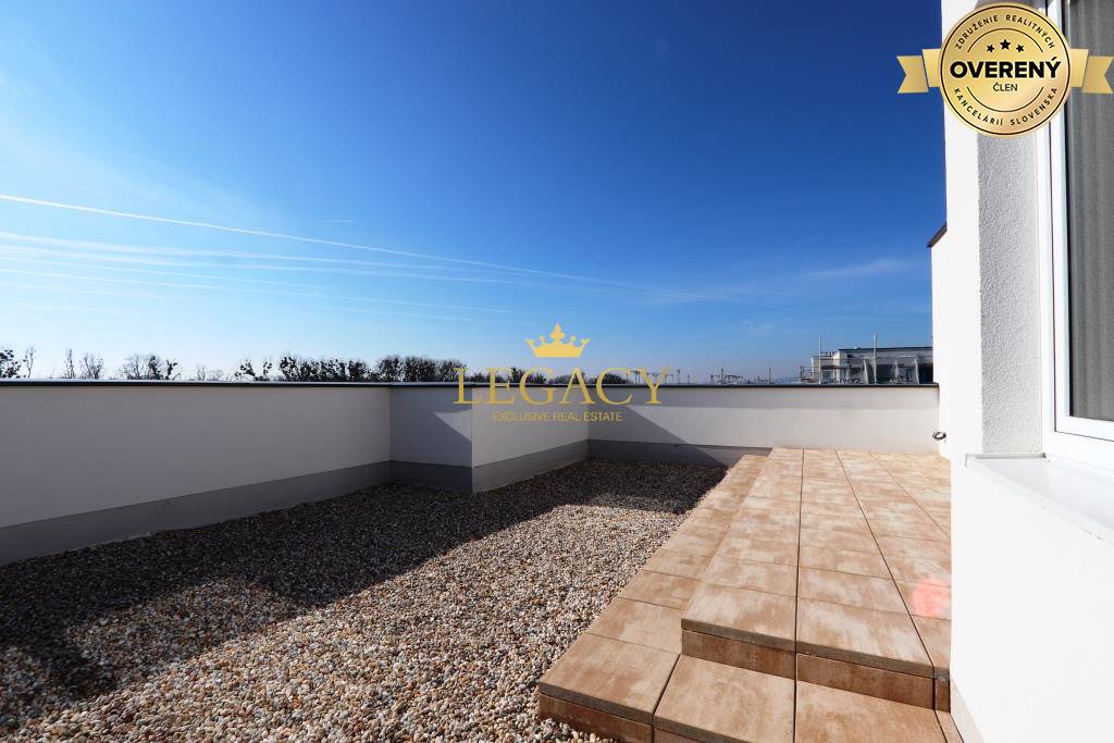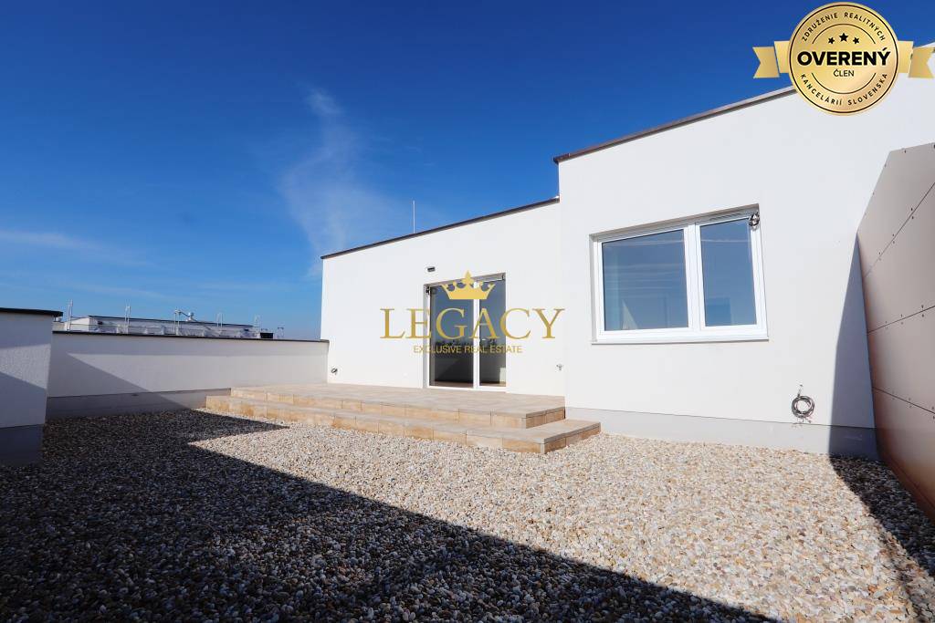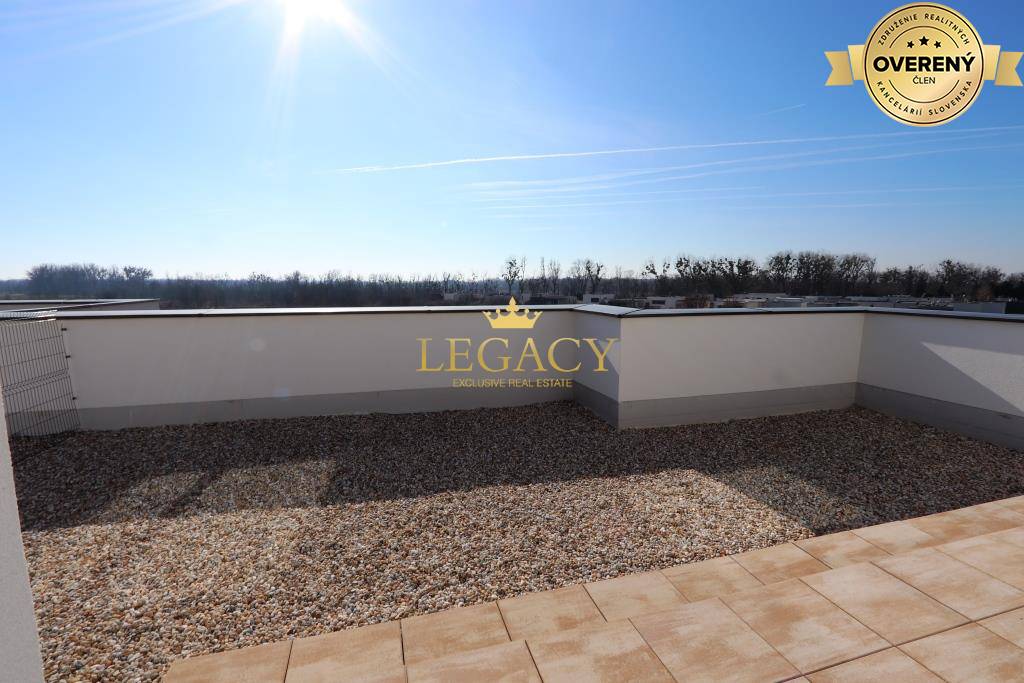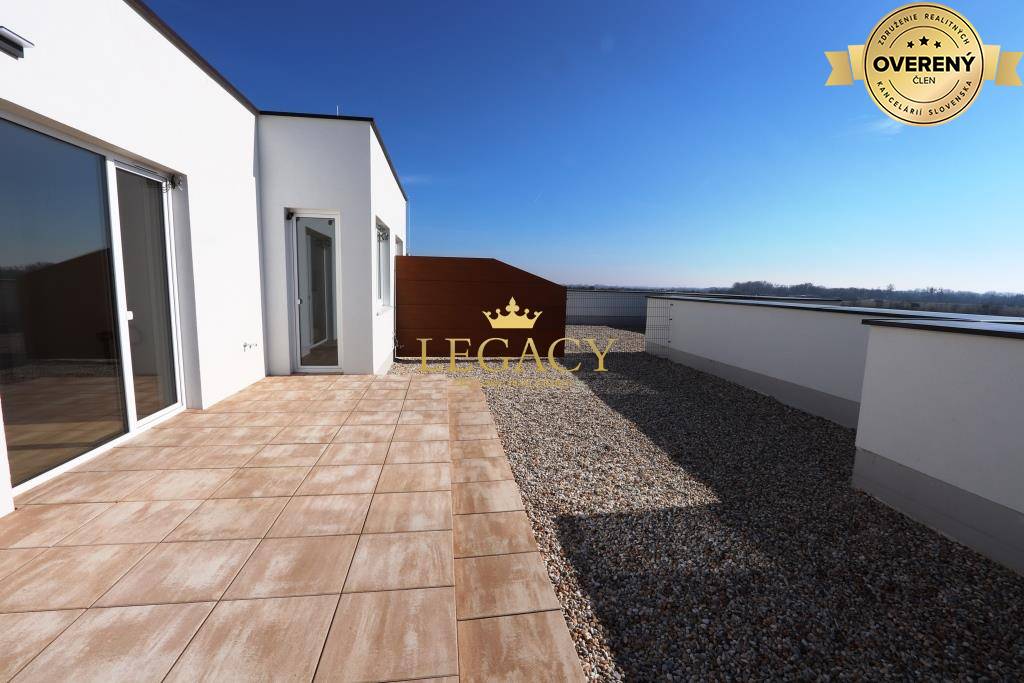 Realitná kancelária LEGACY ponúka EXKLUZÍVNE NA PREDAJ nadštandardný 3-izbový byt s veľkou strešnou terasou o výmere 72m² a jedným vonkajším parkovacím miestom. Byt sa nachádza v novostavbe na Bernolákovskej ulici atraktívnej lokality obce...